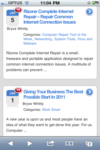 The mobile version of the Technibble front page supports the iPhone, iPad, Android, Blackberry, Palm OS, Samsung touch mobiles and you can just view it in that devices web browser.